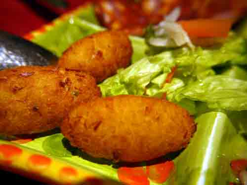 一・俵に成形して小麦粉、卵、パン粉の順につけて揚げる。
