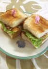 一・パンを焼きレタス、卵焼き、へしこ、チーズをのせる。